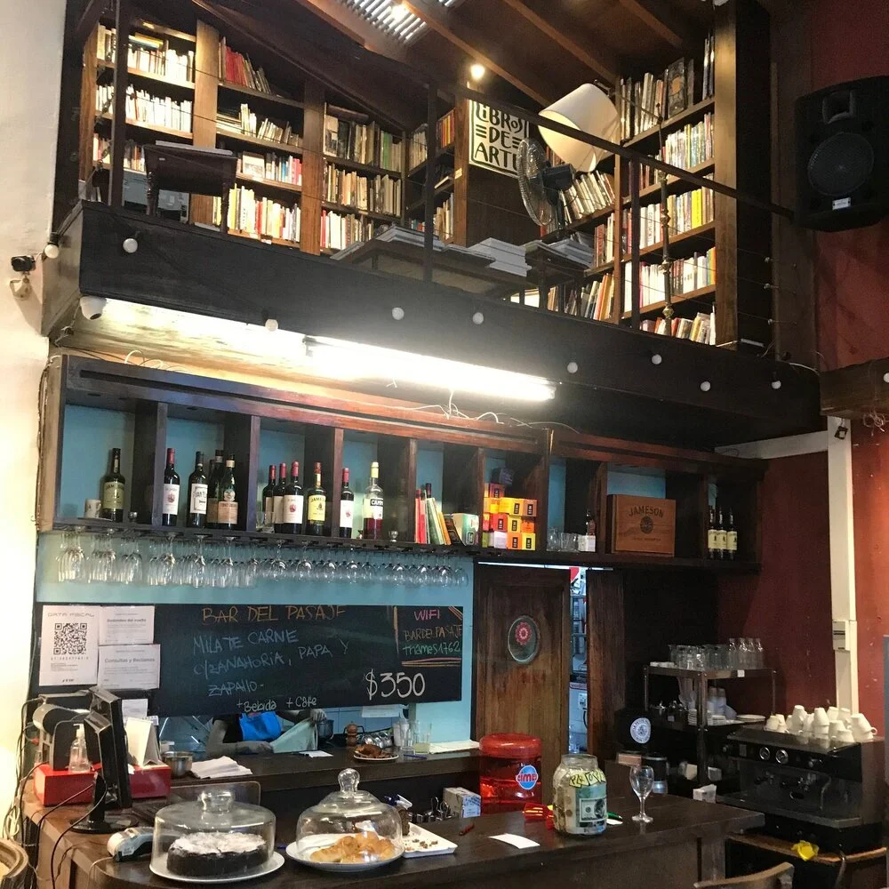 Libros Del Pasaje: This is a gem of a place and a must visit in general. It is a beautiful bookstore with a cafe in the back. They have a greenhouse type seating surrounded by books. Very laptop friendly again,